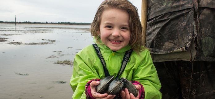 Clamming is a generally safe, enjoyable, and family-friendly activity that offers a hands-on way to connect directly with Oregon’s ecosystems. However, it’s essential to approach this activity with care—for both your safety and the health of the environment. Please keep the following safety & stewardship tips in mind on your next dig: