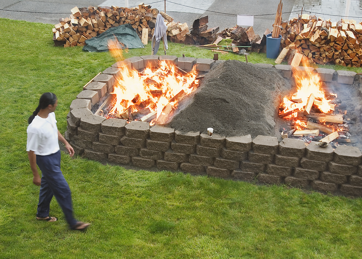 I can’t remember what year. I had to oversee the building of the salmon pit. The KoKwel Resort/Casino’s salmon pit is an above-ground pit filled with salmon. In traditional settings, the salmon pits would be in the longhouse and maybe another outside. There are two ways to traditionally cook salmon: skewered (staked over the fire) and in an earthen oven (under coals and sand).