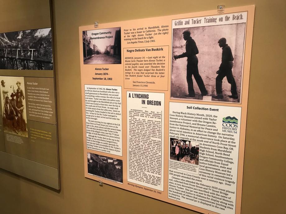 Coos Bay bears the burden of one of the worst documented cases of racial violence in our state’s history, during a time when Black residency was prohibited by the Oregon Constitution. On September 17, 1902, Alonzo Tucker, a Black boxer and gym owner from California, was arrested in Coos Bay (known as Marshfield at that time) for allegedly assaulting a white woman. A lynch mob formed, and despite Tucker’s escape attempt, he was shot and lynched. Over 300 unmasked individuals were present, but no one was ever arrested for Tucker’s murder.