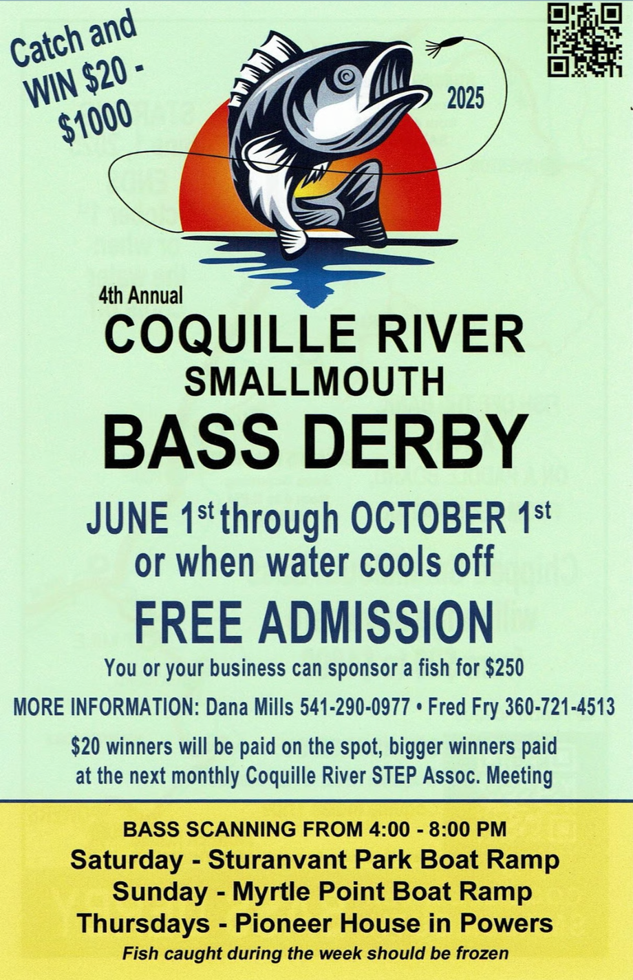 The 4th Annual Coquille River Smallmouth Bass Derby, running now through October 1, is more than a fishing competition. It’s a season-long effort to protect native fish by removing an invasive predator, with the chance to earn some serious cash along the way.