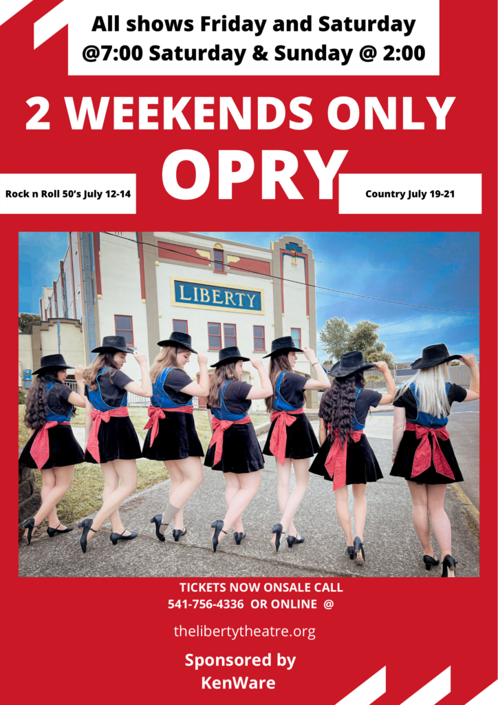 - Summer OPRY at Liberty Theatre, home of Little Theatre on the Bay - July 12-21, 2024. North Bend's Lil Ole Opry returns this summer for an exclusive two-weekend run! Celebrating 42 years of captivating audiences, this year's show promises to be a spectacular revue of fabulous singing, dancing, and live bands performing electrifying Rock ’n’ Roll from the ’50s and timeless classic country hits. Enjoy four thrilling performances each weekend, with two matinees and two evening shows at the historic Liberty Theatre, home of Little Theatre on the Bay. Don't miss out on the magic! For tickets, please visit https://thelibertytheatre.org/