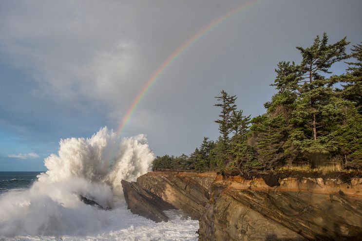- Shore Acres State Park, located 12 miles from downtown Coos Bay, is widely regarded as the premier storm-watching spot on the Oregon Coast. Perched atop an 80-foot cliff, it offers safe, breathtaking views of winter storms. Visitors can also enjoy the park's storm-watching hut, providing a sheltered vantage point for the dramatic ocean swells.