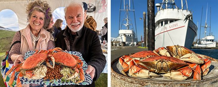 More than 900 pounds of Fresh Dungeness Crab will be served. Dinners - whole or half crabs at market price - include side dishes and a roll. Add a dessert for the perfect Oregon Coast meal, provided for donation by the Charleston Fishing Families. Area businesses provide items for raffle drawings. For those who want to attend but don’t want to eat crab, a gourmet hot dog lunch with sides will also be available.