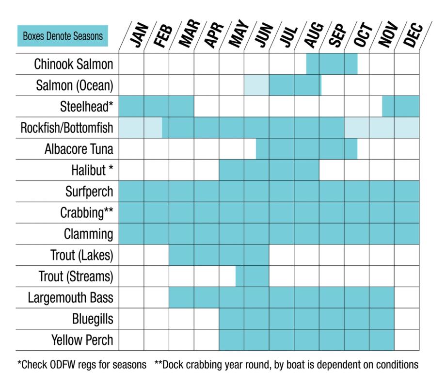 When it comes to fishing in Oregon, opportunities are in no short supply – especially here on Oregon's Adventure Coast! There are fish for every season and an endless choice of prime fishing spots to select from.
